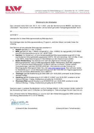 Anerkannt als Bildungsurlaub bzw. anerkannter Bildungsträger für Bildungsurlaub/Bildungszeit in: Baden-Württemberg, Berlin, Bremen, Hamburg, Hessen, Nordrhein-Westfalen, Rheinland-Pfalz, Saarland, Schleswig-Holstein, Thüringen