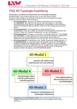 - Sie lernen das 4D-Typologie-Modell in abwechslungsreichen, praxisorientierten Übungen gruppendynamisch und hautnah kennen.