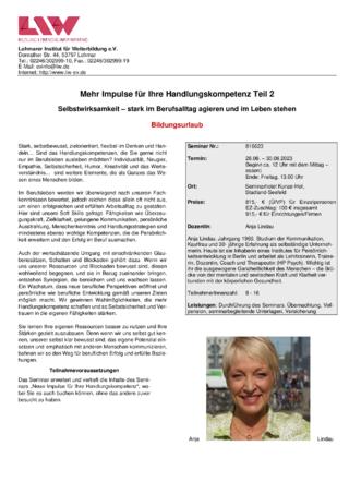 Mehr Impulse für Ihre Handlungskompetenz Teil 2