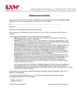 Anerkannt als Bildungsurlaub bzw. anerkannter Bildungsträger für Bildungsurlaub/Bildungszeit in: Baden-Württemberg, Hessen, Niedersachsen, Nordrhein-Westfalen, Saarland