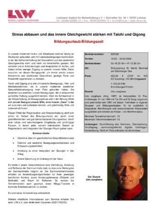 Durch einen gleichbleibenden und gut überschaubaren Übungsablauf und durch eine ruhige und naturbezogene Umgebung stellt sich der Effekt der Regeneration und der Stressentlastung in der Regel schon im Verlauf des Bildungsurlaubs ein. Eine konsequente Übungsanleitung und die Vermittlung didaktischer Konzepte ermöglichen eine Weitergabe der Inhalte im beruflichen Kontext.